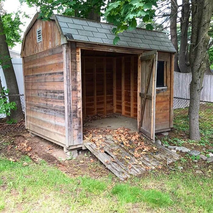- One. Our skilled crew will demo your old shed. We’ll take it down safely and gather all debris.